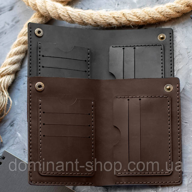 Чоловіче шкіряне портмоне Brutto коричневе з натуральної телячої шкіри ручної роботи на кнопці гаманець шкіра