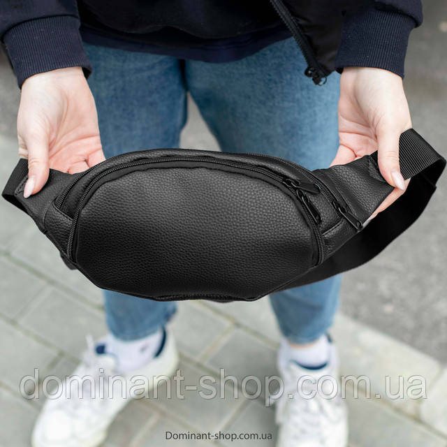 Стильна вмісна поясна сумка-бананка MENI з якісної чорної екокожі flotar для молоді на 4 відділення