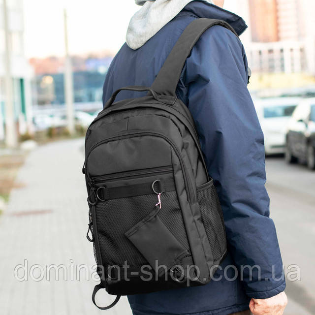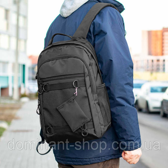 Рюкзак Prime чорний тканинний міский з гаманцем на карабіні на 21 літра