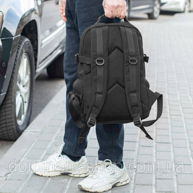 Міський рюкзак Kraft Black 18 л — чоловічий тканинний рюкзак Softshell, чорний, водостійкий, з відділенням для ноутбука