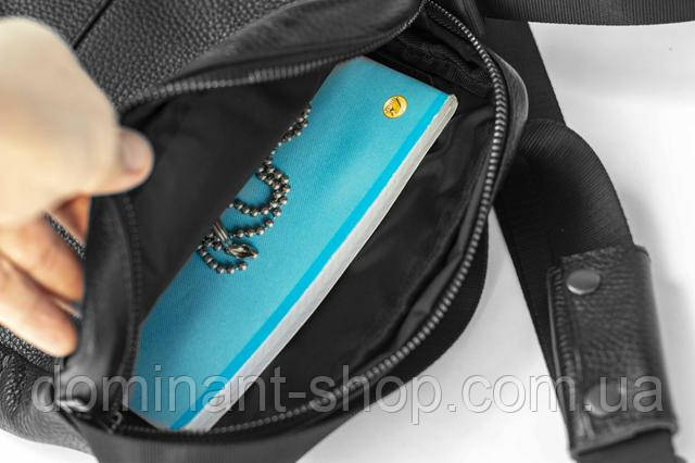 Oswald Black — стильна чоловіча сумка через плече з натуральної зернистої шкіри флотар. Універсальний дизайн, продумана функціональність та якісна фурнітура роблять цю модель ідеальною для міста, прогулянок та офісу. Завдяки компактним, але містким розмірам легко вміщує планшет "до 10 дюймів", документи, телефон, ключі та інші важливі речі.
